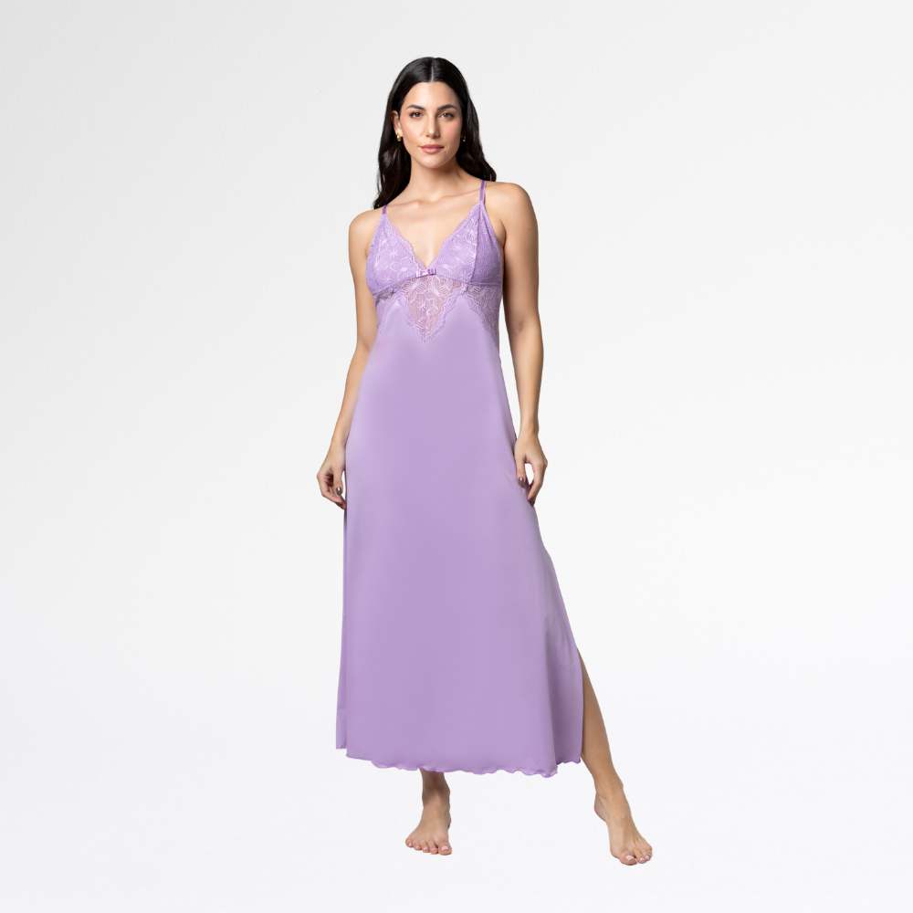 Transforme suas noites em momentos de puro conforto e elegância com esta camisola em renda e microfibra.