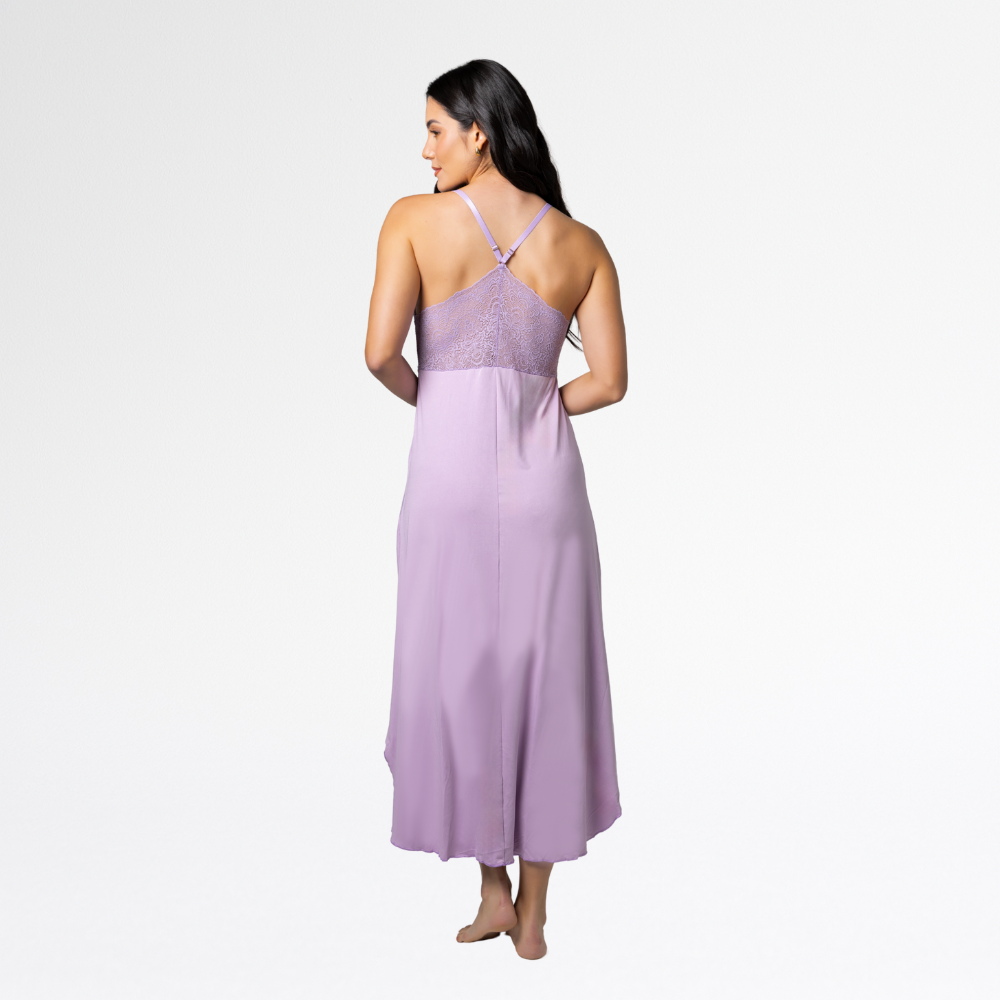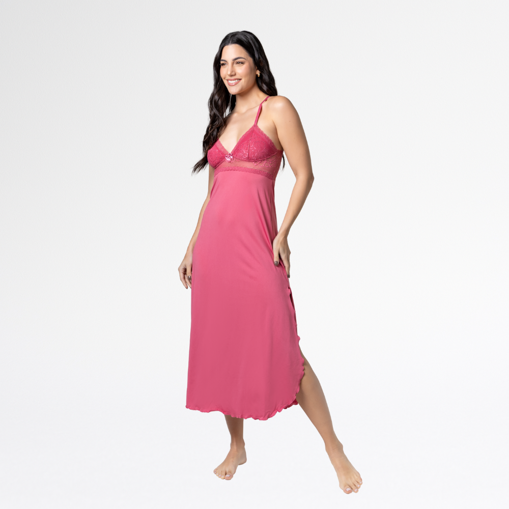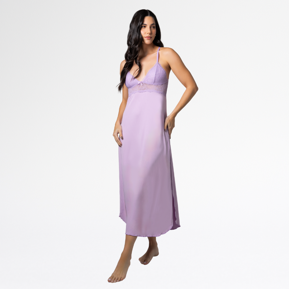 3. Versatilidade e EstiloIdeal para ser usado como peça de homewear elegante, um look charmoso para ocasiões especiais ou até como opção leve para dias mais descontraídos. A combinação da renda com o corte longo confere um visual que mistura delicadeza e sofisticação, fazendo com que o vestido seja uma peça coringa no seu guarda-roupa.