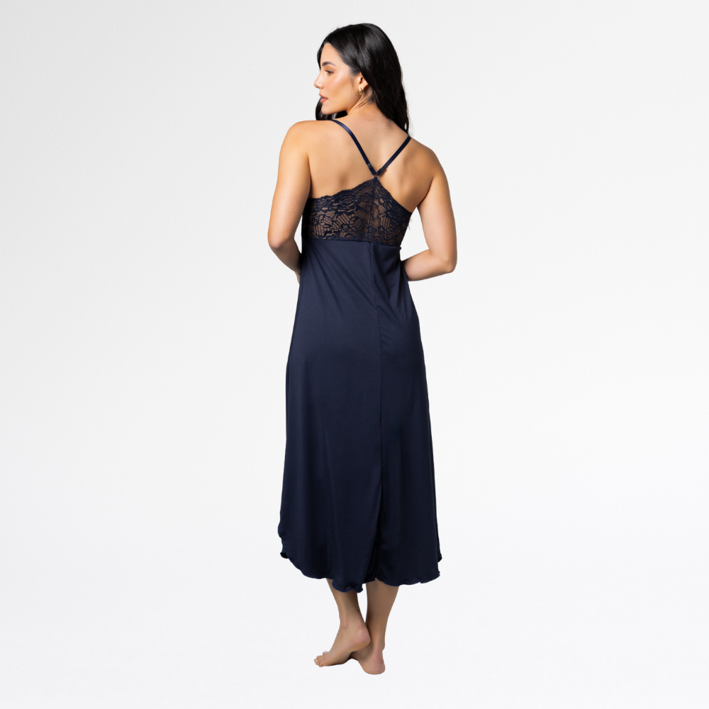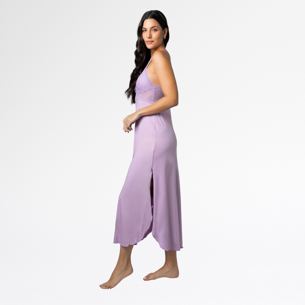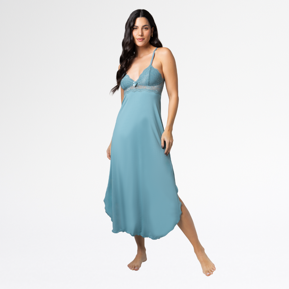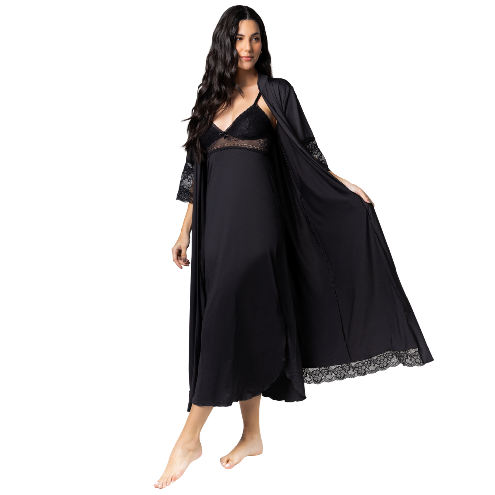 3. Versatilidade e EstiloIdeal para ser usado como peça de homewear elegante, um look charmoso para ocasiões especiais ou até como opção leve para dias mais descontraídos. A combinação da renda com o corte longo confere um visual que mistura delicadeza e sofisticação, fazendo com que o vestido seja uma peça coringa no seu guarda-roupa.
