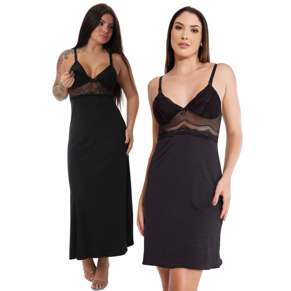 KIT CAMISOLA AMAMENTAÇÃO LONGA CAMISOLA GESTANTE CURTA